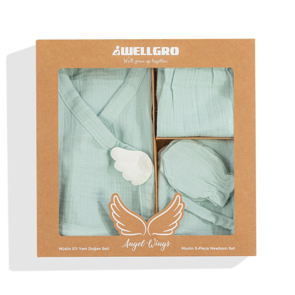WALLXPERT Set za novorođenče (5 komada) Angel Wings Newborn Baby Set Mint