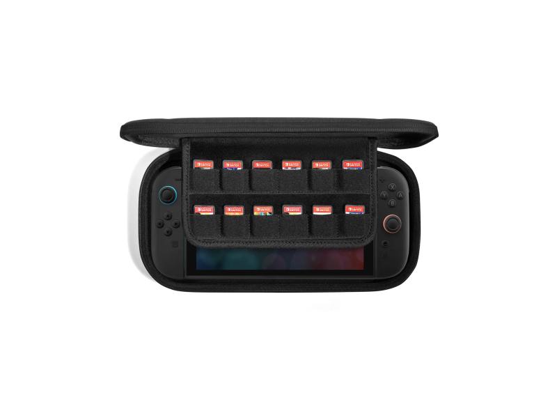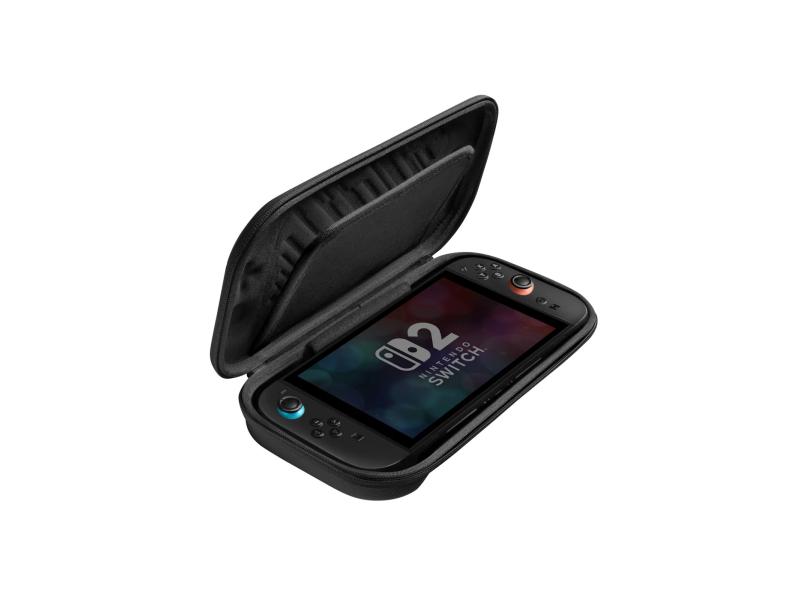 Elegantan i izdržljiv carrying case za Nintendo Switch 2 (model 2025), namenjen bezbednoj zaštiti konzole tokom putovanja, skladištenja ili svakodnevne upotrebe. Kućište je napravljen sa tvrdom spoljašnjošću i mekanom unutrašnjošću, uključuje mesto za do 12 kartica igara i dodatni prostor za osnovne dodatke kao što su kablovi ili punjač. Pogodan je za distributere gejming dodataka, prodavnice konzolnih proizvoda i online kataloge.