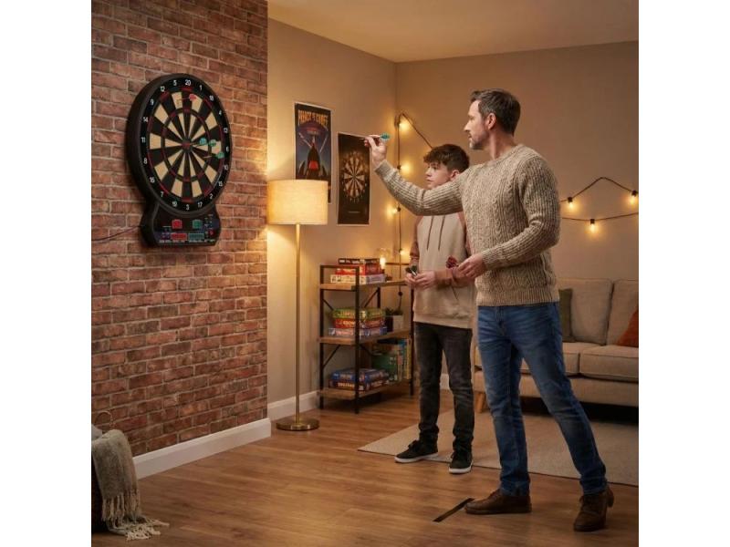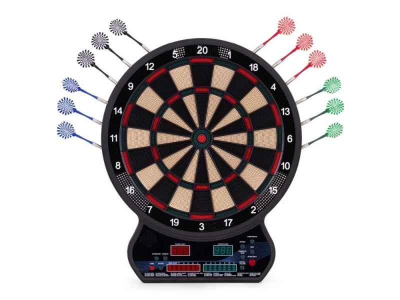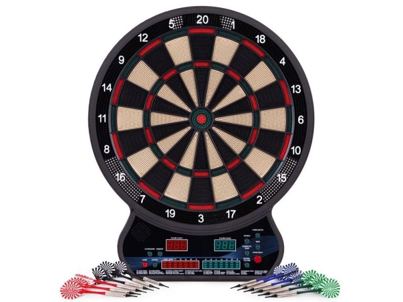 | Karakteristike | Elektronska pikado tabla nudi 27 različitih igara u 202 varijacije — mnogo zabave kako za solo igru, tako i u društvu prijatelja. Zahvaljujući 12 uključenih pikada, možete početi sa igrom gotovo odmah nakon raspakivanja. Panel sa displejima (LED/LCD) automatski broji poene i vodi rezultat — nema potrebe za ručnim praćenjem. Konstrukcija je izrađena od izdržljive plastike otporne na intenzivne udarce pikadom, što garantuje dug vek trajanja table. Oprema podržava igru za do osam igrača istovremeno — idealno za druženja kod kuće. Montaža je brza i jednostavna — samo okačite tablu ili je postavite na prikladno mesto. Set sadrži sve što je potrebno za trenutnu igru: tablu, set pikada i ugrađeni sistem za brojanje poena — bez stresa, sve spremno za zabavu. SPECIFIKACIJA