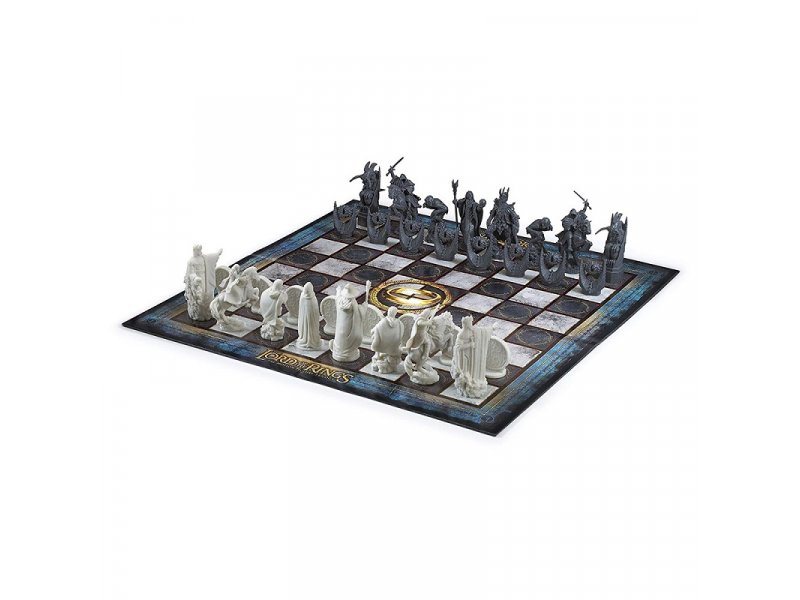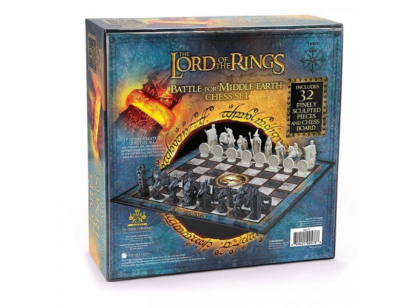 | Karakteristike | Zapovedajte silama dobra, predvođenim Galadrijelom, Aragornom, Frodom i Gandalfom Sivim, ili upravljajte silama zla, uključujući Goluma, Nazgula, Sarumana i Mračnog gospodara Saurona! Epska bitka dobra i zla odigrava se sa ovim neverovatno detaljnim šahovskim setom. Uključuje 32 fino izvajane figure i punu grafičku šahovsku tablu. Šahovske figure mere 5 do 10 cm. Dimenzija ploče za igru je 47 cm x 47 cm. |
