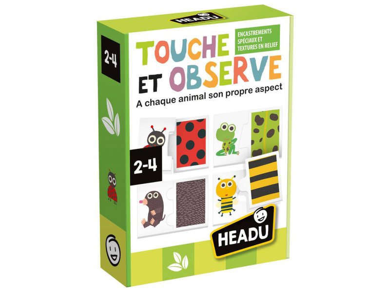 Set sadrži 18 dvostranih delova slagalice, odnosno 2x9 parova životinja i slika teksture njihove kože. Kada se slagalica sklopi i okrene dobija se slika livade koja prikazuje stanište tih životinja.