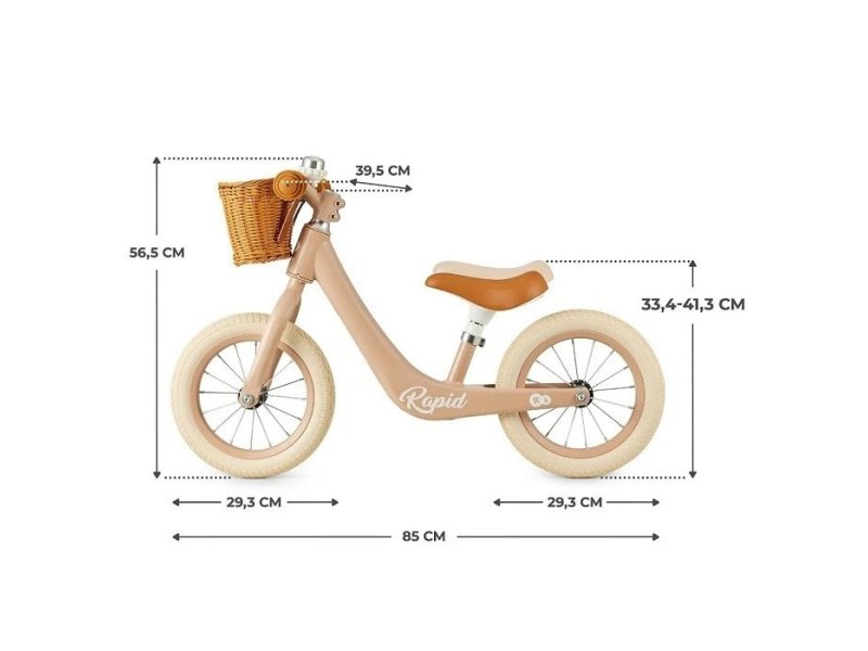| Opis | Glavne prednosti Od 2 godine Lagan, izdržljiv okvir od legure magnezijuma Veliki, napunjeni točkovi Podesivo sedlo Korpa za upravljač Lagani bicikl u retro stilu Bicikl za ravnotežu je najbolji način da se pripremite za učenje vožnje bicikla: razvija osećaj ravnoteže i sposobnost manevrisanja. RAPID privlači pažnju svojim dizajnom, pastelnim bojama i prefinjenim detaljima. Lakoća i izdržljivost u jednom! Okvir od legure magnezijuma RAPID je ravnotežni bicikl koji je lagan i izdržljiv. Ima okvir od legure magnezijuma (magnezijum), što ga čini otpornim na koroziju, kao i na udarce i vibracije tokom vožnje. Težak je samo 3,7 kg. Podesivo sedište RAPID raste sa vašim detetom: ima podesivo sedište koje možete lako da prilagodite visini vašeg deteta. Sedlo možete podesiti u rasponu od 33,5-41,5 cm. Bezbednosna rešenja Volan ima gumene ručke koje istovremeno ne klize. Pored toga, bicikl za ravnotežu RAPID je opremljen niskim okvirom koji olakšava ulazak i bezbednom ograničenom funkcijom okretanja volana. Ovo smanjuje rizik od naglog, nekontrolisanog skretanja prilikom učenja vožnje Pumpani točkovi Ima velike, pumpane točkove sa ležajem. Dobro amortizuju tokom vožnje - pogodni su i za gradske izlete i za šetnje po neravnom terenu. Obratiti pažnju na detalj RAPID ima tanak, zaobljen okvir. Takođe povećava sigurnost bicikla. Pored toga, bicikl ima dodatnu opremu: korpu za igračke i zvono. Pastelne boje Nova verzija RAPID-a dostupna je u tri varijante boja. Izaberite svoj omiljeni i idite u šetnju! Materijali Legura magnezijuma Lagan, izdržljiv materijal, otporan na koroziju Legura magnezijuma Guma, napumpani točkovi Savršeno za šetnje u gradu i van njega Guma, napumpani točkovi Plastična korpa Specifikacija Starost/težina/visina deteta: 2 godine - 35 kg Težina proizvoda: 3,7 kg Dimenzije proizvoda: Rasklopljeni: 71 x 52,5 x 39,5 cm Podešavanje sedla: 33,5-41,5 cm Točkovi: 30 cm |