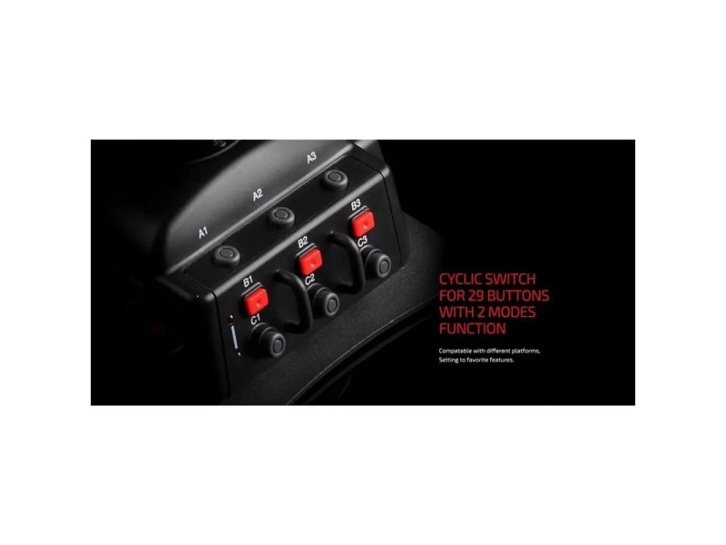 Ostalo | Broj tastera 29 Povezivanje USB Ostalo: Specijalizovani softver za podešavanje mrtve zone, preciznosti i rezolucije Ažuriranje firmvera putem USB-a Hall senzor tehnologija pruža vrhunsku preciznost i pouzdanost (koristi magnetska polja umesto konvencionalnih otpornika) Moćan 32-bitni ARM kontroler Okidač sa funkcijom „sigurnosne brave“ 4 ose (X, Y, Z i RX ose) + 3 (eksterne papučice) 8-smerni POV Hat prekidač Dimenzije:18.8 x 14.8 x 23.8 cm Brend: FlashFire |