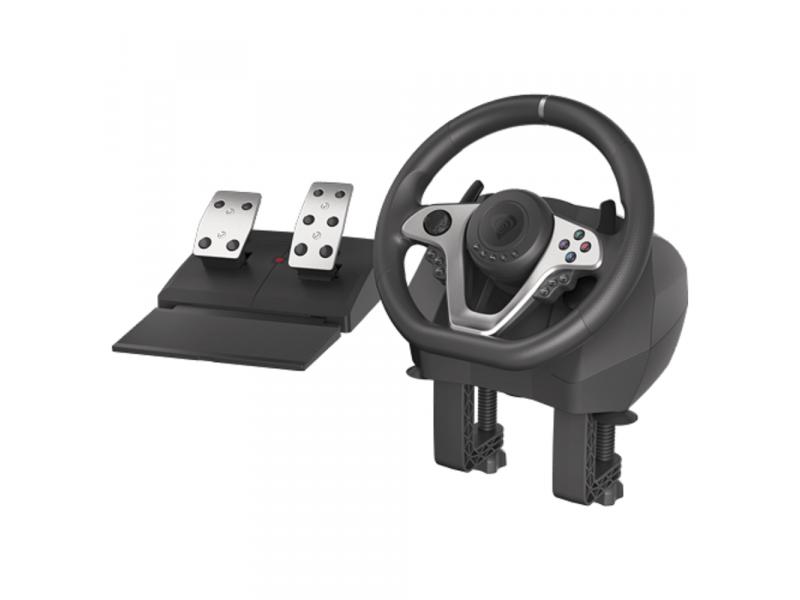 | Ostalo | Menjač: Sekvencijalni menjač Papučice: Gas i kočnica Broj tastera: 15 tastera, kursor Kursor: Osmosmerni Rotacija: 900° Vibracija: Da (dva motora) Konekcija: USB Podržane verzije operativnog sistema: Windows 7/8/10, Sony PlayStation 4, Sony PlayStation 3, Nintendo Switch, XBOX One, XBOX 360, XBOX Series S Montaža: Fiksna + vakuum Prečnik volana: 26 cm Dimenzije: 290 x 110 x 350 mm (ŠxVxD) Masa: 2290 g |