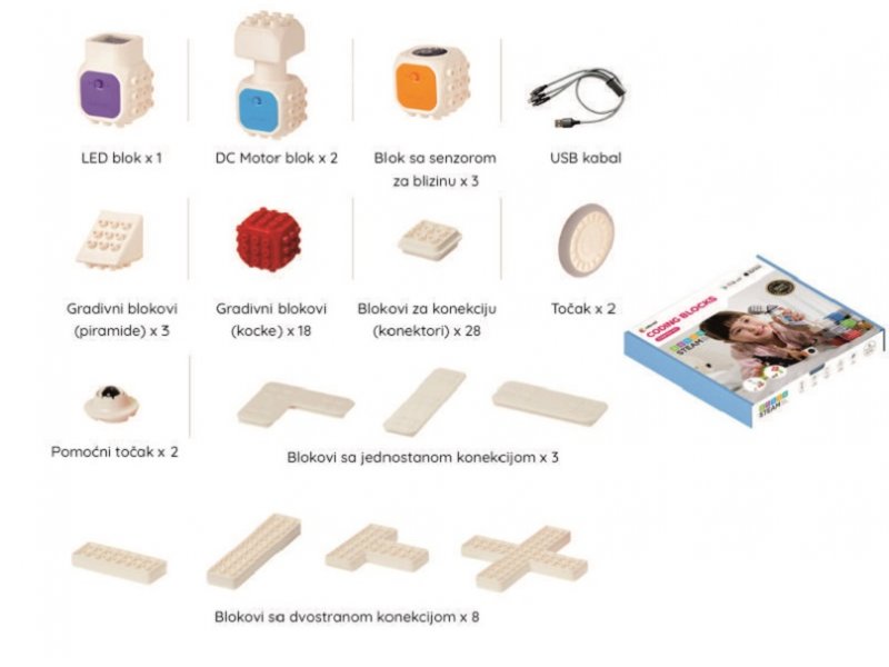 | Karakteristike | Ovaj set se koristi za početni i srednji nivo kodiranja i sadrži tri vrste motora (2DC Motor bloka, Blok sa senzorom za blizinu, LED blok) i osnovne gradivne blokove, koji rade bez ikakvih spoljašnjih veza. Povezivanje blokova i njihova funkcija se ostvaruje bežičnim putem što omogućava korisniku kodiranje u dosta različitih kombinacija. Ovaj set pruža mogućnost sklapanja složenih robota koji mogu sadržati čak 4 motor bloka. Svaki od njih ima važnu ulogu u kodiranju robota. Upotrebom ovih blokova proces programiranja se diže na viši nivo. Neki od robota koje možete napraviti pomoću ovog seta su: automobil, različite životinje, pametni ventilator, vetrenjača, duh, toranj, ringišpil, vetrokaz, kula sa pokretnim mostom, točak, felne i još preko 100 drugih Verujemo u naš proizvod! Iz tog razloga, ukoliko ne budete zadovoljni proizvodom koji ste kupili, isti možete vratiti u roku od 15 dana od dana kupovine (proizvod mora biti u originalnoj ambalaži, kompletan i neoštećen). Možete ga kupiti na…link Budite kreativni, koristite maštu, napravite nove robote i naučite ih da se kreću nadesno, nalevo i da se okreću za pun krug. Pomeranje robota do određene lokacije, pronalaženje puta, okretanje itd., predstavljaju funkcije koje vas upoznaju sa algoritmima za kodiranje i uvode vas u svet programiranja. DC motor blok, koji je sastavni deo seta, je blok koji ima sposobnost rotacije za 360°. Blok sa senzorom za blizinu ima funkciju detekcije blizine objekta koji se kreće ka njemu i može ga detektovati na 4-5 cm udaljenosti. LED blok poseduje 64 LED lampice i ima sposobnost prikazivanja velikog broja različitih ilustracija na svom ekranu. |