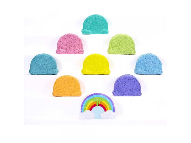 Karakteristike | Uzrast: 5 + godina Materijal: plastika i magična smesa Dimenzije: 10,7 x 5,5 x 5,5 cm Set sadrži: kutiju u obliku duge, smesu sa sadržajem iznenađenja (šjlokice, dijamante, snežne i šarene dugine perle) i čarobni aromatizovani sjaj |