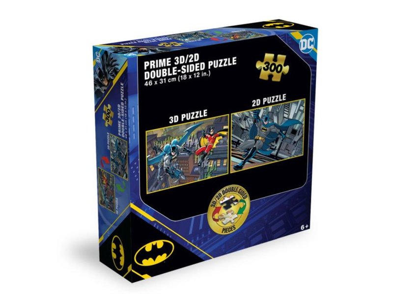 Karakteristike | Dvostrana slagalica: 3D i 2D varijanta Motiv: Betmen i Robin u borbi protiv zlikovaca, direktno iz DC univerzuma Broj elemenata: 300 Dimenzije slagalice: 46 x 31 cm Dimenzije pakovanja: 21.5 x 5 x 25.5 cm |