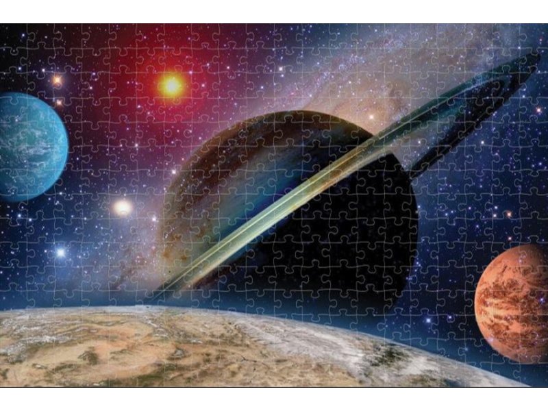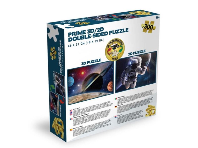 Karakteristike | Dvostrana slagalica: 3D i 2D varijanta Motiv: Planete, svemirske misterije i astronaut Broj elemenata: 300 Dimenzije slagalice: 46 x 31 cm Dimenzije pakovanja: 21.5 x 5 x 25.5 cm |