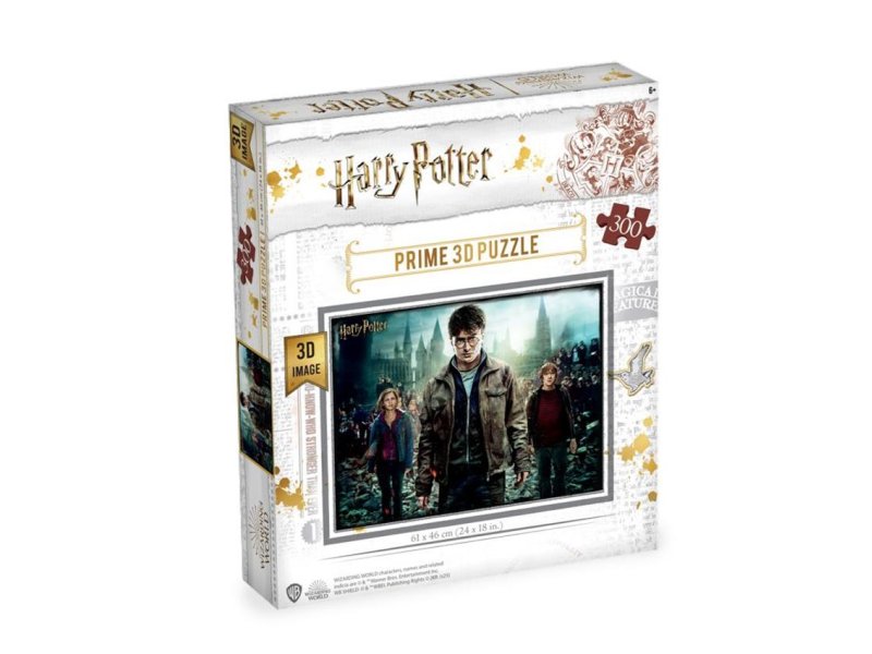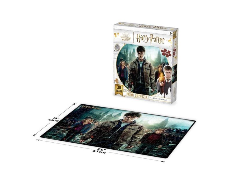 | Karakteristike | Prime 3D slagalica sa efektom dubine Motiv: Harry Potter, Hermione Granger i Ron Weasley ispred Hogwartsa Broj elemenata: 300 Dimenzije slagalice: 61 x 46 cm Dimenzije pakovanja: 21.5 x 5 x 25.5 cm |