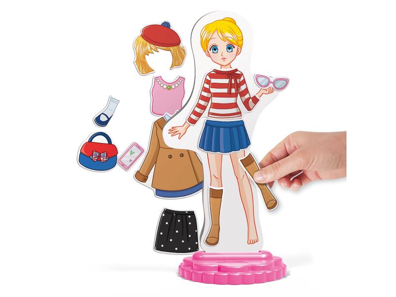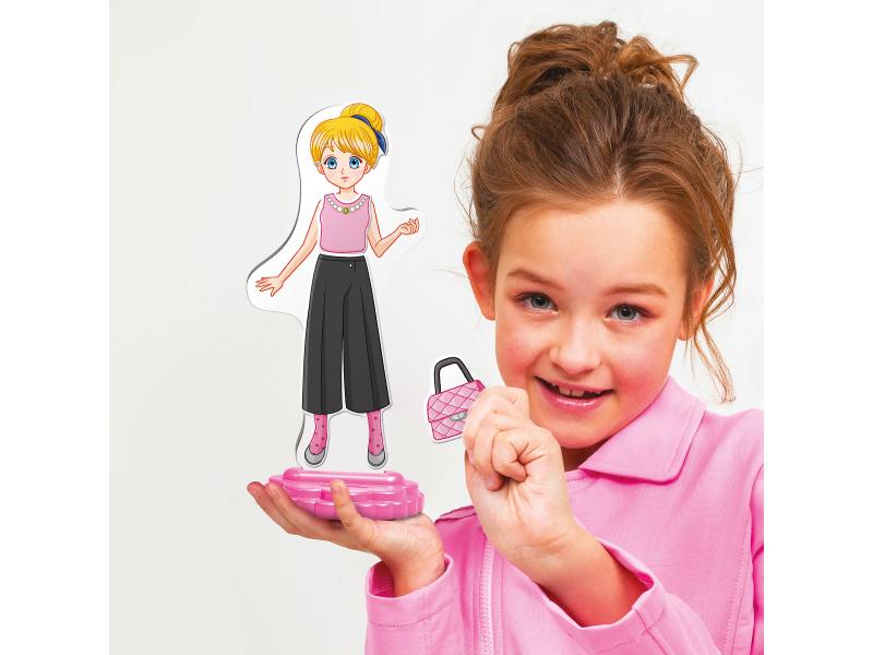 Karakteristike | Set se sastoji od postolja na kome se postavlja magnetna lutka i 29 dodataka u vidu garderobe i modnih detalja. Dimenzije: 25.5 x 6 x 25.5 cm |