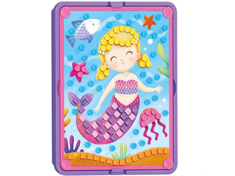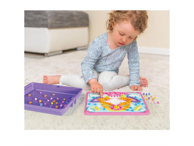 Karakteristike | Umetnite šarene igle u ilustrovane kartice i kreirajte spektakularne mozaike. Koristite praktičan kofer da odložite sve posle igranja. Sadržaj seta: 300 delova Materijal: Plastika Dimenzija pakovanja: 23.5 x 5.5 x 27.5 cm |