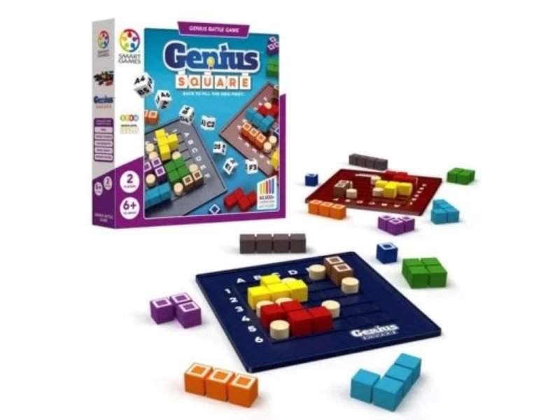 The Genius Square stavlja svakoga na test. Počni tako što ćeš baciti kockice, koje će ti pokazati na koje pozicije da postaviš blokatore (blokere). Nakon toga trka može da počne. Svaki igrač ima identičnu tablu i identičan set drvenih delova. Gde god da su blokatori postavljeni, ostali delovi uvek mogu da se uklope oko njih — samo treba da budeš prvi koji će to rešiti