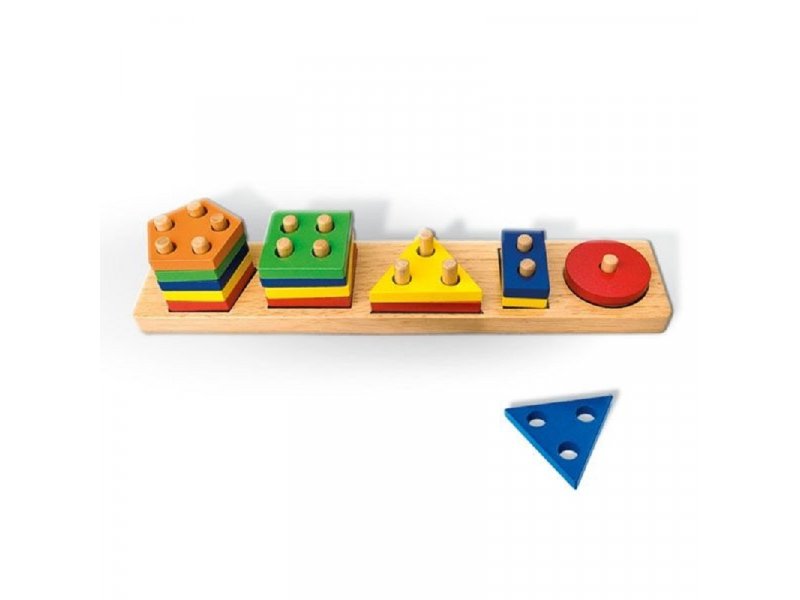 Geometrijska umetaljka sa bojama i oblicima.Sortiranjem deca upoznaju prvi pojam broja i skupa jer svaki oblik ima različit broj elemenata u nizu od
