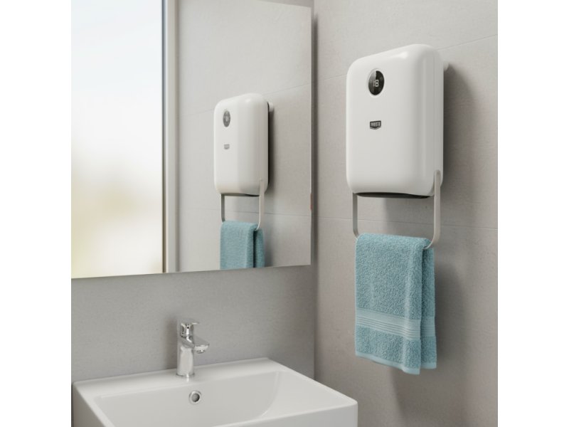 Grejalica za kupatilo sa držačem peškira Prosto FKF2023 koja kombinuje efikasno zagrevanje i praktične dodatke za maksimalnu udobnost. Montira se na zid, poseduje sklopivi držač za peškire, tajmer i LED displej za jednostavno upravljanje temperaturom, a sve funkcije dostupne su i putem daljinskog upravljača. Sa dva nivoa snage (1000/2000 W), PTC grejačem i termostatom omogućava brzo i sigurno zagrevanje, dok funkcija senzora otvorenog prozora automatski gasi grejalicu i štedi energiju. Kompaktno i masivno kućište u beloj boji, zaštita od pregrevanja i nivo buke manji od 60 dB čine je idealnim rešenjem za prijatno i sigurno zagrevanje kupatila tokom hladnih dana.