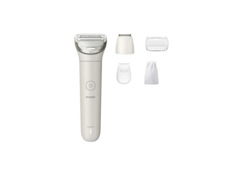 | Ostalo | Vrsta uređaja: Lady Shaver – epilator za celo telo Radni vek baterije: Do 100 minuta rada po punjenju Glava uređaja: Fleksibilna glava za praćenje kontura tela Osvetljenje: Integrisano LED svetlo za bolju vidljivost dlačica Dodaci: 4 nastavka – za noge, telo, lice i bikini zonu Bezbednost i higijena: Dermatološki testiran Ne izaziva iritacije i pogodan za osetljivu kožu |