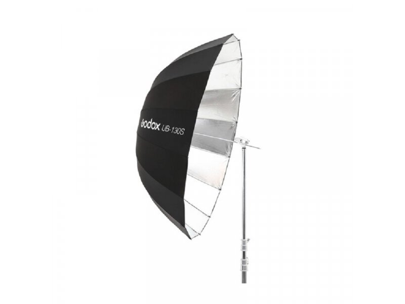 | Karakteristike | Godox UB-130S Silver Parabolic Umbrella (130cm) je jedinstven modifikator svetla koji kombinuje osobine kišobrana i softbox-a. Kišobran poseduje srebrnu unutrašnjost sa crnom spoljašnjošću što omogućava mekano svetlo ali oštro usmereno. Pomeranjem kišobrana napred-nazad po šipci svetlo se fokusira i menja se širina snopa. |