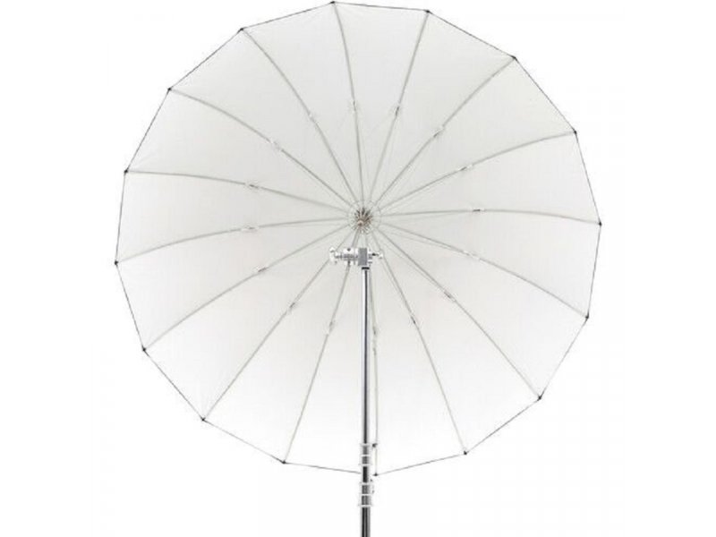 | Karakteristike | Godox UB-165W White Parabolic Umbrella (165cm) je jedinstven modifikator svetla koji kombinuje osobine kišobrana i softbox-a. Kišobran poseduje belu unutrašnjost sa crnom spoljašnjošću što omogućava mekano svetlo ali oštro usmereno. Pomeranjem kišobrana napred-nazad po šipci svetlo se fokusira i menja se širina snopa. |