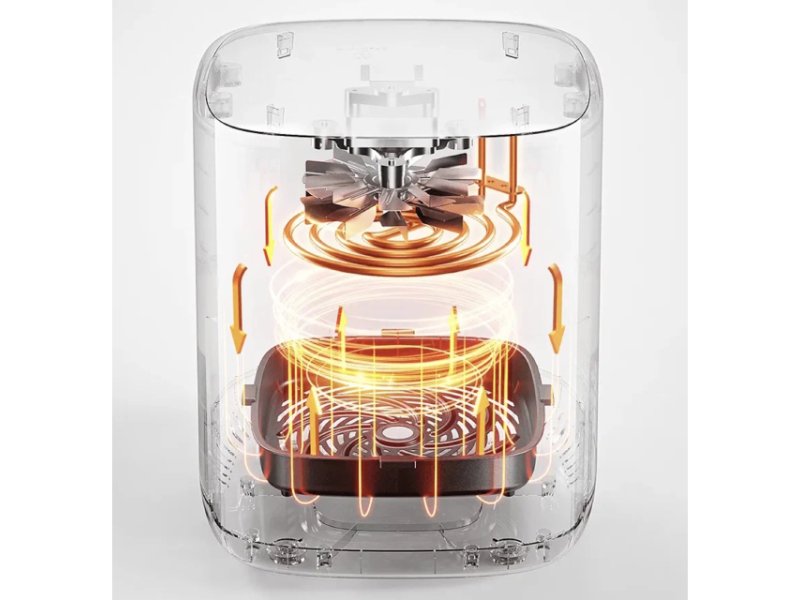 Uređaj je dizajniran sa fokusom na praktičnost – korpa se lako uklanja i čisti, a bezbednosne funkcije pružaju dodatnu sigurnost tokom rada. Elegantno belo kućište uklapa se u svaki kuhinjski prostor, čineći ovaj air fryer pouzdanim saveznikom za zdravije i brže kuvanje.
