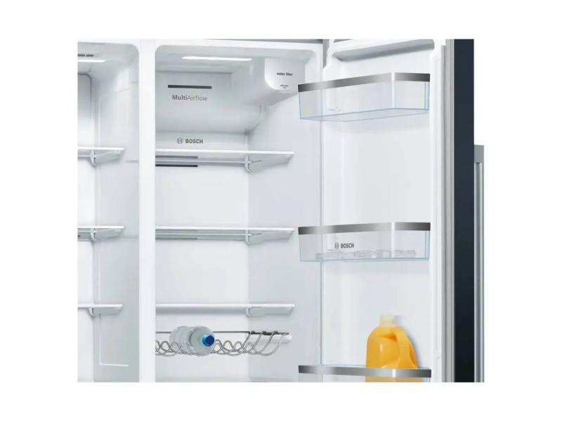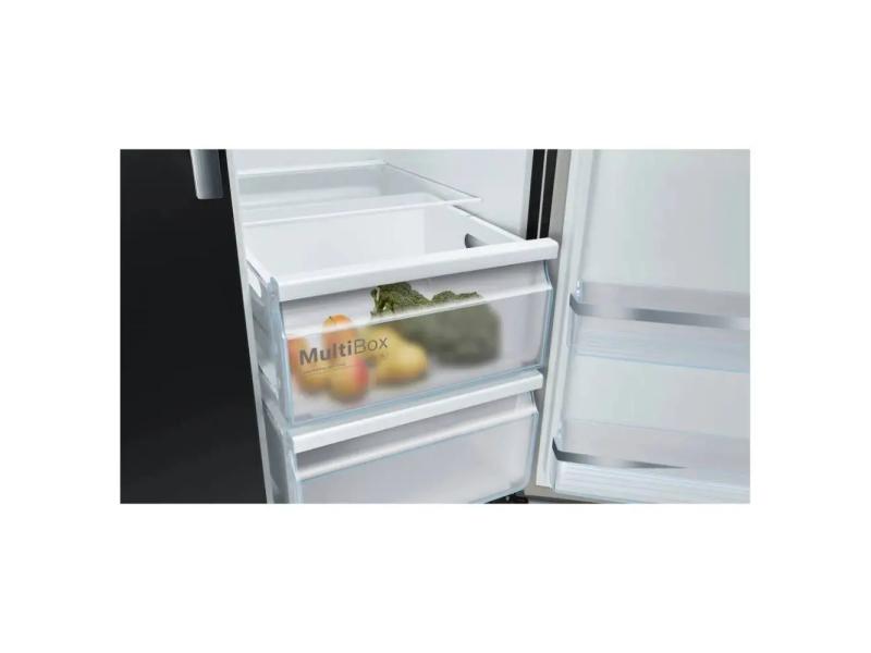 | Ostalo | Karakteristike Položaj zamrzivača: Bočno Tehnologija hlađenja: Total No Frost Klimatska klasa: N-SN-T-ST Otapanje frižidera: Automatsko Otapanje zamrzivača: Automatsko Kapacitet zamrzavanja: 12 kg/24h Čuvanje kod kvara električne energije: 3 h Godišnja potrošnja energije: 323 kWh Dozator ledene vode: Lomljeni led, Kockice leda, Vodeni filter, Voda Nivo buke: 42 dB Klasa emisije buke: D Funkcije Multi AirFlow SuperCooling SuperFreezing VarioZone Kontrola na dodir Dispenzer za led i vodu Alarm otvorenih vrata Uređenost Broj polica u frižideru: 5 Broj polica na vratima frižidera: 5 Broj fioka u frižideru: 2 Broj polica u zamrzivaču: 5 Broj fioka u zamrzivaču: 2 |