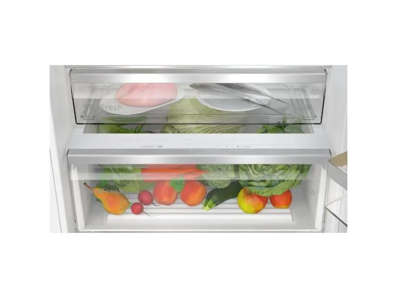 | Ostalo | Karakteristike Položaj zamrzivača: Dole Tehnologija hlađenja: No Frost Klimatska klasa: N-SN-T-ST Otapanje frižidera: Automatsko Otapanje zamrzivača: Automatsko Kapacitet zamrzavanja: 10 kg/24h Čuvanje kod kvara električne energije: 13 h Godišnja potrošnja energije: 204 kWh Nivo buke: 33 dB Klasa emisije buke: B Funkcije VitaFresh SuperCooling SuperFreezing Alarm otvorenih vrata Tehnologija Home Connect Daljinsko praćenje i upravljanje Uređenost Broj polica u frižideru: 4 Broj podesivih polica u frižideru: 3 Broj polica na vratima frižidera: 4 Broj fioka u frižideru: 2 Broj fioka u zamrzivaču: 3 |