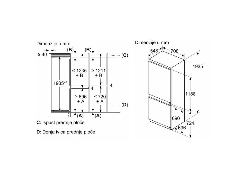 | Dimenzije | Visina: 1935 mm Širina: 708 mm Dubina: 548 mm |