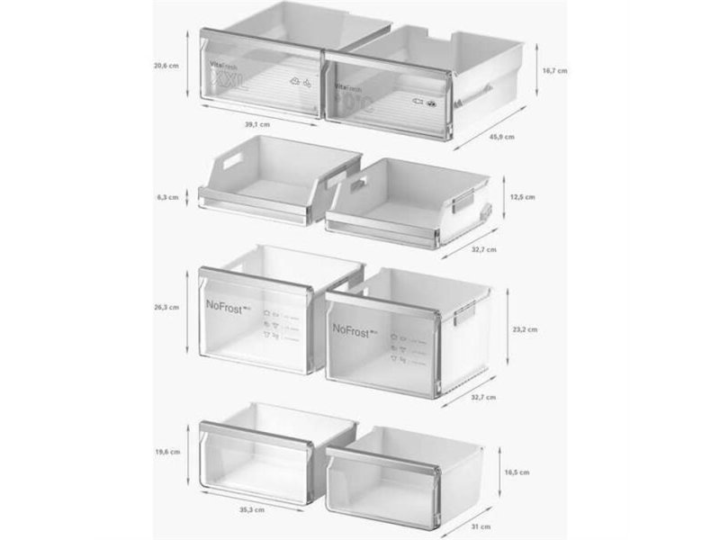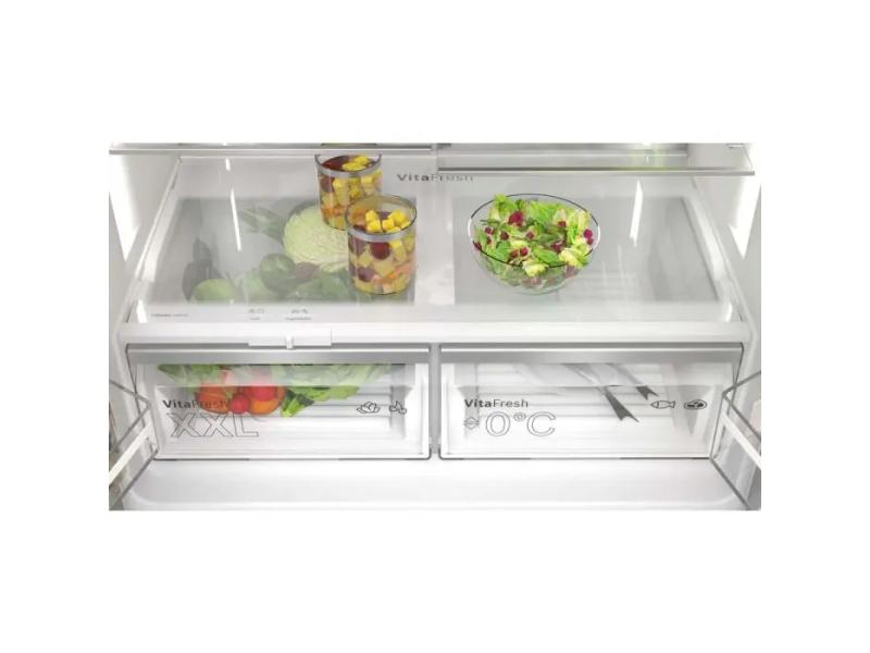 Ostalo: | Karakteristike Položaj zamrzivača: Dole Tehnologija hlađenja: Total No Frost Klimatska klasa: N-SN-T-ST Otapanje frižidera: Automatsko Otapanje zamrzivača: Automatsko Kapacitet zamrzavanja: 16 kg/24h Čuvanje kod kvara električne energije: 11 h Godišnja potrošnja energije: 327 kWh Dozator ledene vode: Lomljeni led, Kockice leda, Voda Nivo buke: 39 dB Klasa emisije buke: C Funkcije Multi AirFlow VitaFresh SuperCooling SuperFreezing EcoMode Quick Ice Kontrola na dodir Tehnologija Home Connect Daljinsko praćenje i upravljanje Alarm otvorenih vrata Uređenost Broj polica u frižideru: 5 Broj podesivih polica u frižideru: 4 Broj polica na vratima frižidera: 5 Broj fioka u frižideru: 2 Broj fioka u zamrzivaču: 6 |