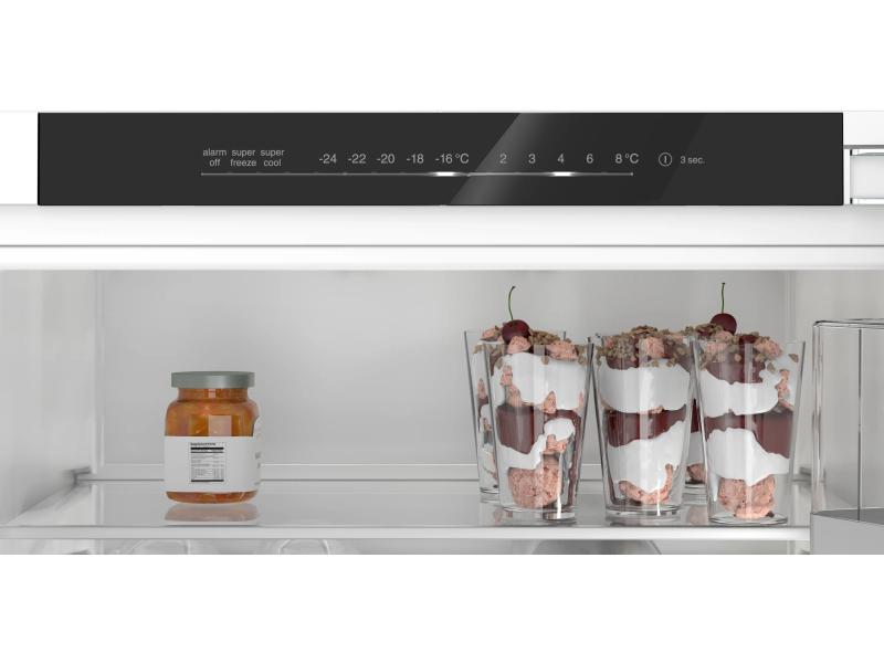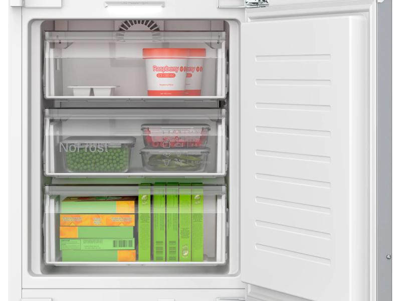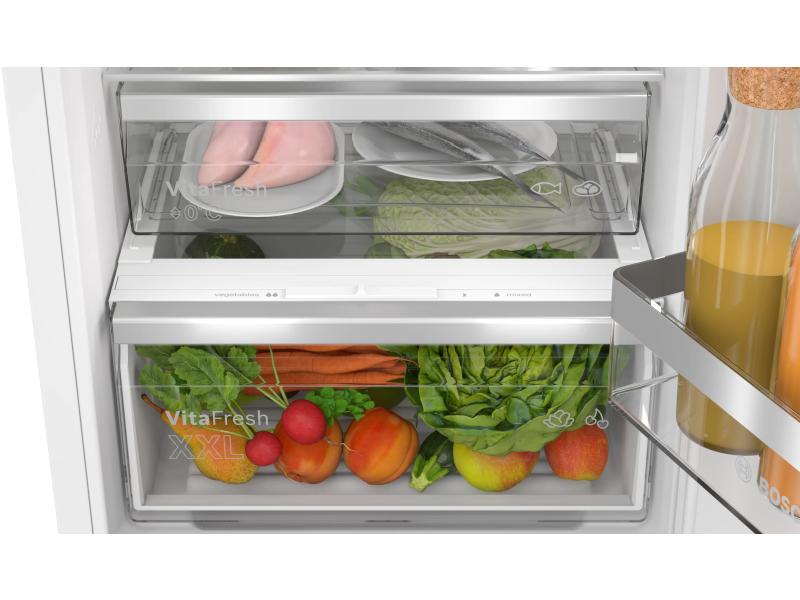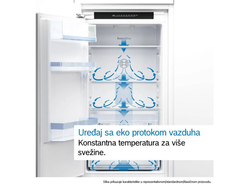 | Ostalo | Karakteristike Položaj zamrzivača: Dole Tehnologija hlađenja: No Frost Klimatska klasa: SN-N-ST Otapanje frižidera: Automatsko Otapanje zamrzivača: Automatsko Kapacitet zamrzavanja: 8 kg/24h Čuvanje kod kvara električne energije: 11 h Godišnja potrošnja energije: 147 kWh Nivo buke: 34 dB Klasa emisije buke: B Funkcije SuperCooling SuperFreezing VitaFresh Ekstremno tiho Alarm otvorenih vrata Uređenost Broj polica u frižideru: 4 Broj podesivih polica u frižideru: 3 Broj polica na vratima frižidera: 3 Broj fioka u frižideru: 2 Broj fioka u zamrzivaču: 3 |