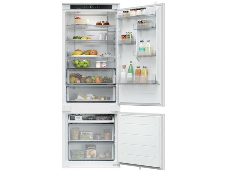 | Ostalo | Karakteristike Položaj zamrzivača: Dole Tehnologija hlađenja: No Frost Odmrzavanje frižidera: Automatsko Odmrzavanje zamrzivača: Automatsko Klimatska klasa: SN-N-ST-T Kapacitet zamrzavanja: 6 kg/24h Autonomno vreme rada: 9 h Godišnja potrošnja električne energije: 226 kWh Nivo buke: 35 dB Klasa emisije buke: B Funkcije Napredna tehnologija povezivanja i daljinske kontrole (Wi-Fi + Bluetooth) hOn aplikacija Humidity Zone MultiFlow Holiday funkcija Smart cool funkcija Super Cooling funkcija Podešavanje temperature frižidera Uređenost Broj polica u frižideru: 4 Broj podesivih polica u frižideru: 3 Broj polica na vratima frižidera: 5 Broj fioka u frižideru: 2 Broj fioka u zamrzivaču: 2 |