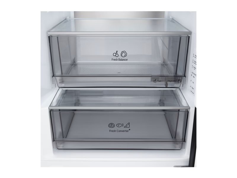 | Ostalo | Karakteristike Tip kompresora: Smart Inverter Položaj zamrzivača: Dole Tehnologija hlađenja: Total No Frost Klimatska klasa: T Kapacitet zamrzavanja: 10 kg/24h Otapanje frižidera: Automatsko Otapanje zamrzivača: Automatsko Godišnja potrošnja električne energije: 175 kWh Nivo buke: 34 dB Klasa emisije buke: B Funkcije LinearCooling DoorCooling+ FRESHConverter+ FRESHBalancer LG ThinQ sa WiFi Zero Clearance Upozorenje na otvorena vrata Ekspres zamrzavanje Smart Diagnosis Multi Air Flow Ledomat ručni Uređenost Police kaljeno staklo: 3 Preklopna polica Nosač za flaše Broj polica na vratima frižidera: 4 Broj fioka u frižideru: 2 Broj fioka u zamrzivaču: 3 |