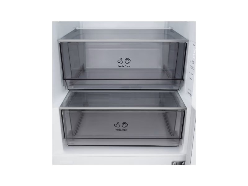 | Ostalo | Karakteristike Tip kompresora: Inverter Položaj zamrzivača: Dole Tehnologija hlađenja: Total No Frost Klimatska klasa: T Kapacitet zamrzavanja: 10 kg/24h Otapanje frižidera: Automatsko Otapanje zamrzivača: Automatsko Godišnja potrošnja električne energije: 253 kWh Nivo buke: 35 dB Klasa emisije buke: B Funkcije LinearCooling DoorCooling+ LG ThinQ sa WiFi Zero Clearance Upozorenje na otvorena vrata Ekspres zamrzavanje Smart Diagnosis Multi-Air Flow Uređenost Broj polica u frižideru: 3 Broj podesivih polica u frižideru: 2 Broj polica na vratima frižidera: 3 Broj fioka u frižideru: 2 Broj fioka u zamrzivaču: 3 |