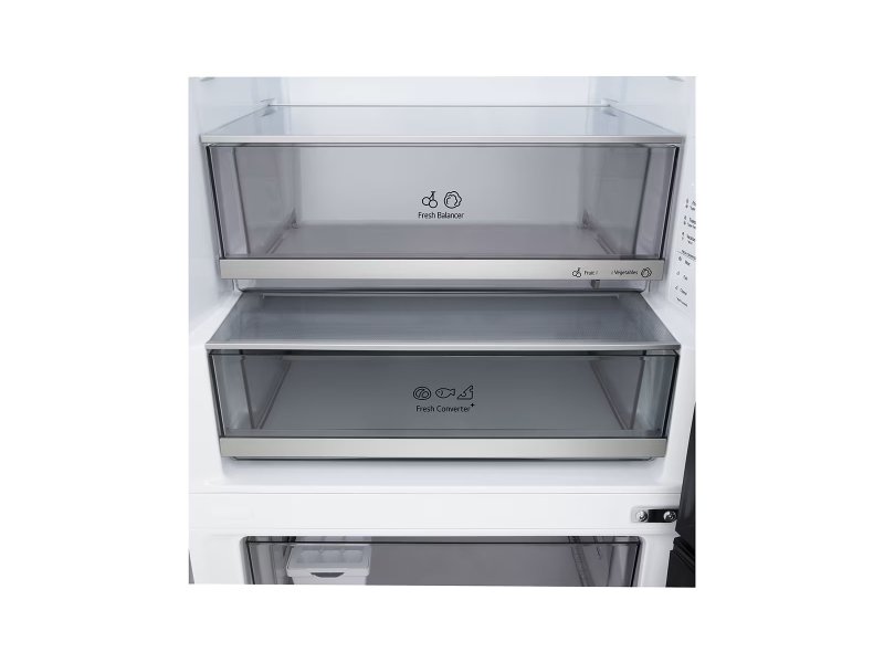 | Ostalo | Karakteristike Tip kompresora: Inverter Položaj zamrzivača: Dole Tehnologija hlađenja: No Frost Klimatska klasa: SN-T Kapacitet zamrzavanja: 12 kg/24h Otapanje frižidera: Automatsko Otapanje zamrzivača: Automatsko Godišnja potrošnja električne energije: 191 kWh Nivo buke: 33 dB Klasa emisije buke: B Ledomat ručni Funkcije LinearCooling DoorCooling+ LG ThinQ sa WiFi Zero Clearance Upozorenje na otvorena vrata Ekspres zamrzavanje Smart Diagnosis Multi-Air Flow FRESHConverter+ FRESHBalancer Uređenost Police kaljeno staklo: 3 Nosač za flaše Broj polica na vratima frižidera: 4 Broj fioka u frižideru: 2 Broj fioka u zamrzivaču: 3 |