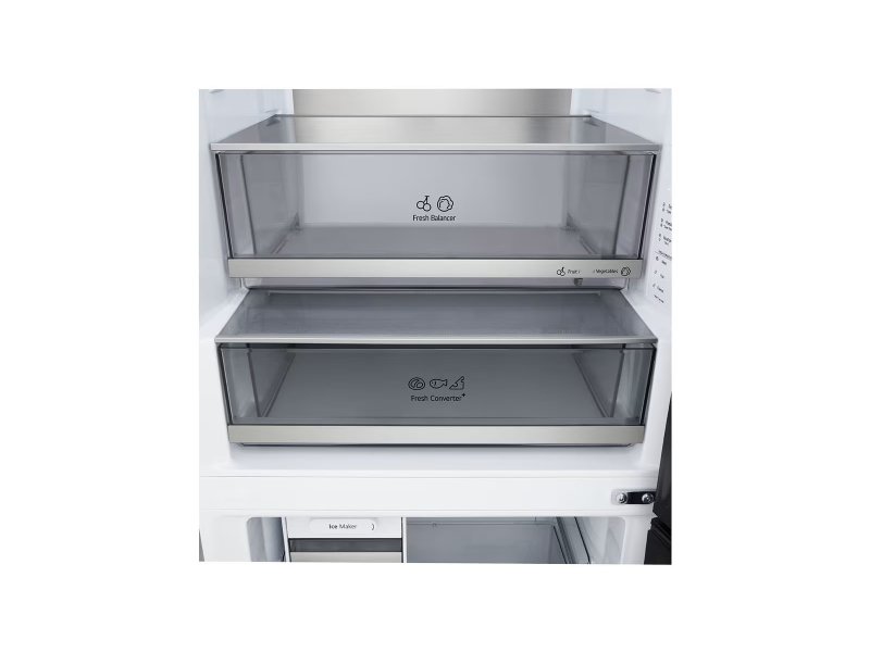 | Ostalo | Karakteristike Tip kompresora: Inverter Položaj zamrzivača: Dole Tehnologija hlađenja: No Frost Klimatska klasa: SN-T Kapacitet zamrzavanja: 12 kg/24h Otapanje frižidera: Automatsko Otapanje zamrzivača: Automatsko Godišnja potrošnja električne energije: 191 kWh Nivo buke: 33 dB Klasa emisije buke: B Funkcije LinearCooling DoorCooling+ LG ThinQ sa WiFi Zero Clearance Upozorenje na otvorena vrata Ekspres zamrzavanje Smart Diagnosis Multi-Air Flow FRESHConverter+ FRESHBalancer Uređenost Police kaljeno staklo: 2 Preklopna polica Nosač za flaše Broj polica na vratima frižidera: 4 Broj fioka u frižideru: 2 Broj fioka u zamrzivaču: 3 |