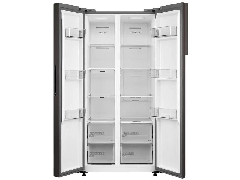 | Ostalo | Karakteristike Položaj zamrzivača: Bočno Tip kontrole: Elektronska Tehnologija hlađenja: No Frost Tip hlađenja: Dual Klimatska klasa: SN-N-T Kapacitet zamrzavanja: 12 kg/24h Otapanje frižidera: Automatsko Otapanje zamrzivača: Automatsko Minimalna temperatura okoline: 10°C Maksimalna temperatura okoline: 38°C Godišnja potrošnja električne energije: 295 kWh Nivo buke: 41 dB Klasa emisije buke: C Vrsta osvetljenja: LED Funkcije Midea’s Smart Home App Multi Air Flow Super Cooling Super Freeze Child Lock Mode Humidity Control Inverter Quattro Uređenost Broj polica u frižideru: 4 Broj polica na vratima frižidera: 3 Broj fioka u frižideru: 2 Broj fioka u zamrzivačuu: 2 Broj polica u zamrzivaču: 4 Broj polica na vratima zamrzivača: 3 |
