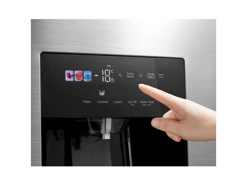 | Ostalo | Karakteristike Položaj zamrzivača: Bočno Tip kontrole: Digitalna Tehnologija hlađenja: No Frost Klimatska klasa: SN-N-ST-T Kapacitet zamrzavanja: 12 kg/24h Otapanje frižidera: Automatsko Otapanje zamrzivača: Automatsko Minimalna temperatura okoline: 10°C Maksimalna temperatura okoline: 43°C Godišnja potrošnja električne energije: 208 kWh Nivo buke: 38 dB Klasa emisije buke: B Vrsta osvetljenja: LED Ugrađeni dispanzer i ledomat Uređenost Broj polica u frižideru: 4 Broj polica na vratima frižidera: 4 Broj fioka u frižideru: 2 Broj fioka u zamrzivačuu: 2 Broj polica u zamrzivaču: 4 Broj polica na vratima zamrzivača: 1 |