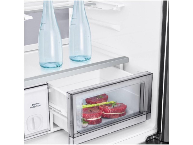 | Ostalo | Karakteristike Položaj zamrzivača: Dole Tip kontrole: Elektronska Tip ekrana: 9" AI Home Tehnologija hlađenja: No Frost Klimatska klasa: ST Rashladno sredstvo (gas): R600a Sistem odmrzavanja: Automatski Kapacitet zamrzavanja: 12 kg/24h Autonomno vreme rada: 8 h Godišnja potrošnja energije: 363 kWh Nivo buke: 35 dB Klasa emisije buke: B Osvetljenje: LED Funkcije Ugrađen WiFi Podrška za SmartThings aplikaciju Kamera Bluetooth Mobile Bixby Set Bixby (Mic) Speaker Metal Cooling Power Freeze Power Cool AI tehnologija hibridnog hlađenja SpaceMax tehnologija Ugrađen UV dezodorans Uređenost Broj polica u frižideru: 4 Broj polica na vratima frižidera: 6 Broj fioka u frižideru: 2 Broj polica u zamrzivaču: 4 Broj fioka u zamrzivaču: 2 Broj polica na vratima zamrzivača: 6 Dvostruki automatski ledomat |