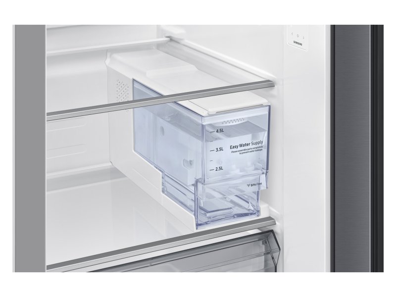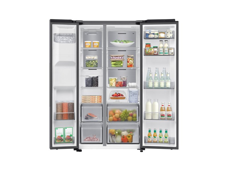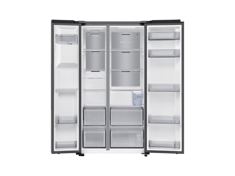 | Ostalo | Karakteristike Upravljanje: Elektronsko Položaj zamrzivača: Bočno Tip hlađenja: Monohlađenje Klimatske klase: ST Otapanje frižidera: Automatsko Otapanje zamrzivača: Automatsko Kapacitet zamrzavanja: 13 kg/24h Autonomno vreme rada: 5 h Rashladno sredstvo (gas): R600a Godišnja potrošnja energije: 349 kWh Nivo buke: 36 dB Klasa emisije buke: C Kompresor: AI inverterski kompresor Tip ekrana: Unutrašnjil (jednostavan UX) Tip dozatora: Dispenzer vode i leda (bez vodovoda, sa rezervoarom za vodu) Ledomat: Unutrašnji ledomat Neto težina: 115 kg Funkcije Integrisan WiFi Podržava SmartThings aplikaciju Mobile Bixby Power Cool funkcija Power Freeze funkcija Metal Cooling Uređenost Broj polica u frižideru: 4 Broj polica na vratima frižidera: 5 Broj fioka u frižideru: 2 Broj polica u zamrzivaču: 4 Broj polica na vratima zamrzivača: 2 Broj fioka u zamrzivaču: 2 |