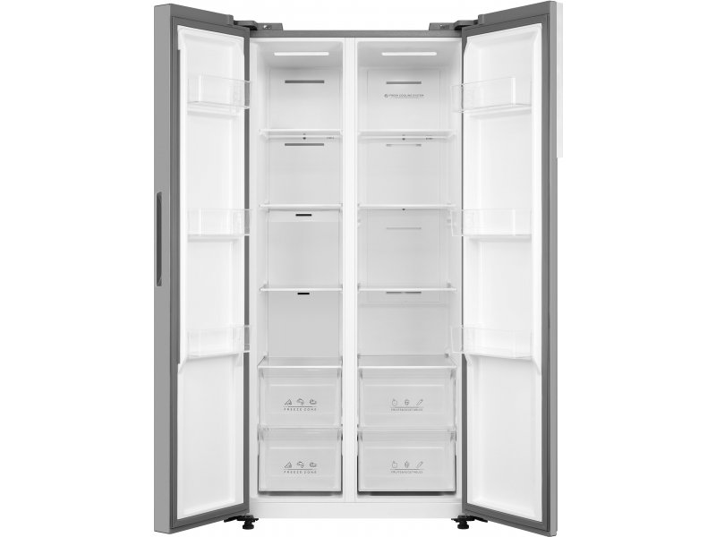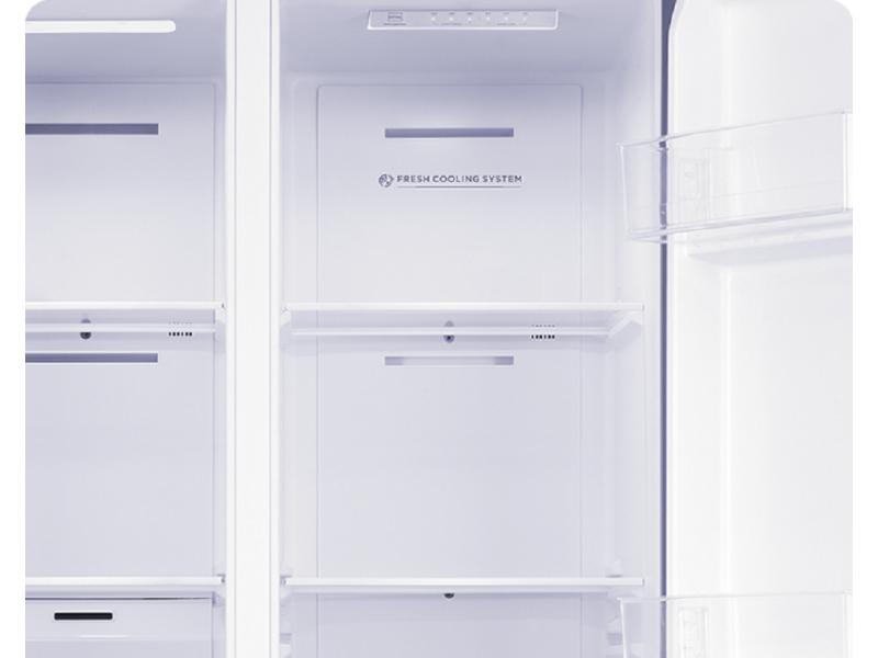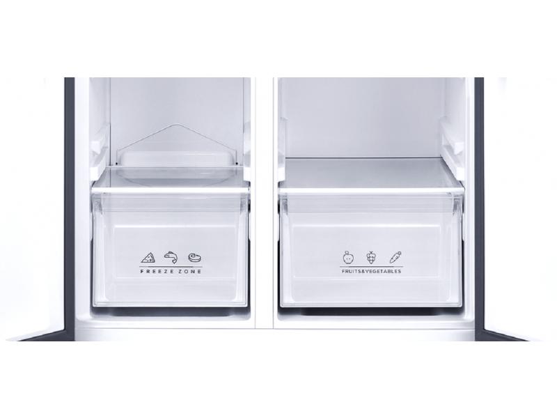 | Ostalo | Karakteristike Sistem hlađenja: Total No Frost Inverter motor: Da Klimatske klase: SN/N/ST/T Položaj zamrzivača: Bočno Kapacitet zamrzavanja (24h): 12 kg Vreme čuvanja u slučaju nestanka el. energije: 9 h Rashladno sredstvo (gas): R600a Nivo buke:40 dB Potrošnja el. energije: 295 kWh godišnje Priključna snaga: 200 W Dužina kabla za napajanje: 185 cm Funkcije Multi-Air Flow Super Cooling Super Freezing Full-Space Air Duct Ultra-thin Foaming Tech |