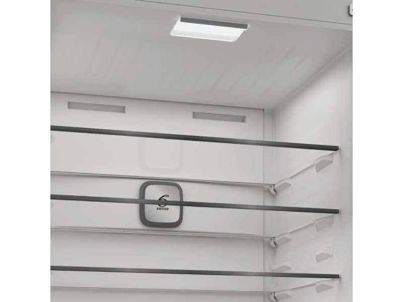 | Ostalo | Položaj zamrzivača: Gore Sistem hlađenja: Frost free Potrošnja energije: 242 kWh/god Nivo buke: 35 dB(A) Broj polica: 4 (frižider), 1x Polica za boce, 1 (zamrzivač) Broj fioka: 2 (frižider) Broj polica na vratima: 5 (frižider), 2 (zamrzivač) Dužina kabla: 215 cm Materijal: Staklene police Dodatne funkcije: Automatsko odmrzavanje (frižider), Automatsko odmrzavanje (zamrzivač), Podesiva temperatura (zamrzivač), 2 temperaturna područja, Indikator otvorenih vrata zamrzivača, Zvučni signal u slučaju kvara, Unutrašnji ventilator za ravnomerno hlađenje Podržane tehnologije: 6th SENSE tehnologija, No Frost Ostalo: Podesive nožice (Samo prednja strana), Deo zamrzivača sa sistemom za odvod vode od otopljenog mraza |