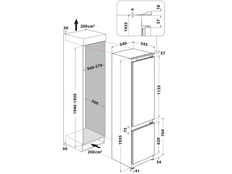 | Tip | Ugradni kombinovani frižider |