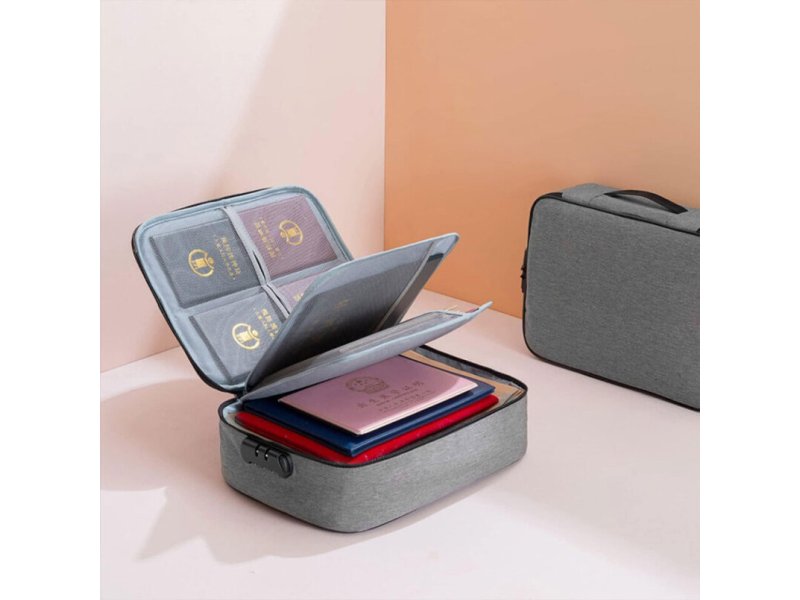 Karakteristike | Torba za skladištenje i organizaciju važnih dokumenata Torba ima ugrađenu sigurnosnu bravu Visokokvalitetan, izdržljiv i vodootporan materijal Idealna za kartice, pasoše, papire formata A4, fotografije, i drugo Višestruki, lako dostupni slojevi 4 odvojivih odeljaka Dostupna u veličini : 37 cm × 27 cm × 10 cm Materijal: oxford cloth |