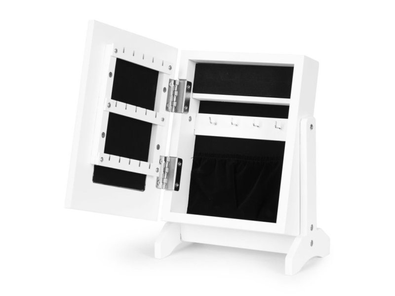 | Karakteristike | Organizator za nakit sa ogledalom predstavlja elegantan i funkcionalan način za čuvanje dragocenih aksesoara. Opremljen je ogledalom na vratima, što olakšava izbor odgovarajućih dodataka, a može se koristiti i za nanošenje šminke. Unutrašnjost ormarića je obložena crnim plišom, što obezbeđuje elegantan izgled i štiti nakit od ogrebotina. Ormarić nudi obilje kuka i posebnih mesta za smeštaj različitih ogrlica, prstenja, narukvica i minđuša. Kompaktne dimenzije i stabilna konstrukcija omogućavaju postavljanje bilo gde u domu, kao što su spavaća soba, kupatilo ili garderober. Dimenzije pakovanja: 34 × 23 × 11 cm Težina: 1 kg |