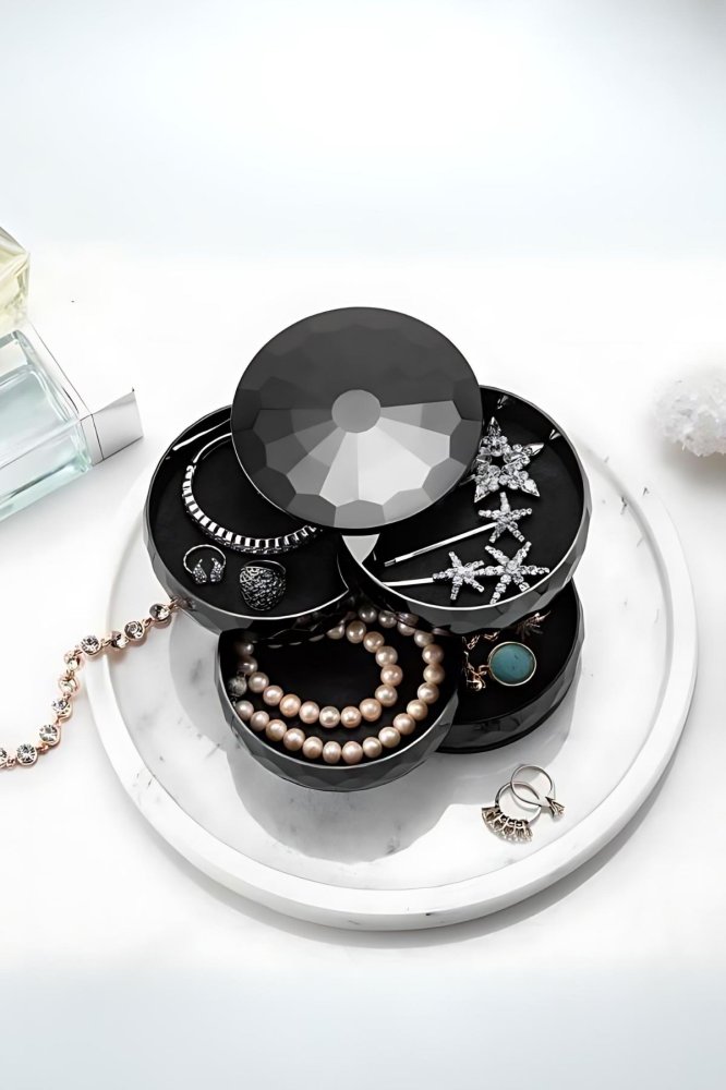 Ova kompaktna kutija za nakit izrađena je od 100% plastike, savršena za odlaganje prstenja, minđuša, lančića i drugih sitnih dragocenosti. Sa dimenzijama 11 x 11 x 12 cm lako se uklapa na komodu, policu ili u fioku, pružajući praktičan način da vaš nakit bude uredno sortiran i uvek pri ruci. Njena neutralna forma i jednostavan dizajn čine je pogodnom za različite stilove enterijera.