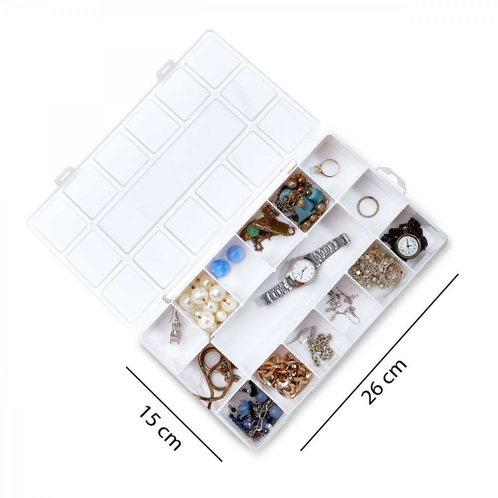 Ova kutija za nakit izrađena je od 100% polipropilena, pružajući izdržljivost i dugotrajnost. Sa dimenzijama od 26 x 15 x 3,5 cm, idealna je za skladištenje raznih vrsta nakita, poput prstenja, ogrlica, narukvica i minđuša. Kompaktna veličina omogućava lako skladištenje i organizaciju u svakom prostoru.
