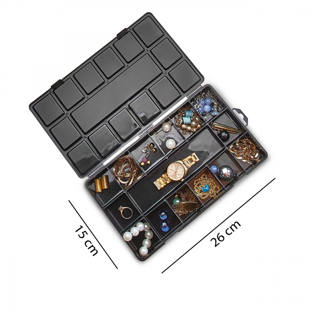Ova kutija za nakit izrađena je od 100% polipropilena, pružajući izdržljivost i dugotrajnost. Sa dimenzijama od 26 x 15 x 3,5 cm, idealna je za skladištenje raznih vrsta nakita, poput prstenja, ogrlica, narukvica i minđuša. Kompaktna veličina omogućava lako skladištenje i organizaciju u svakom prostoru.