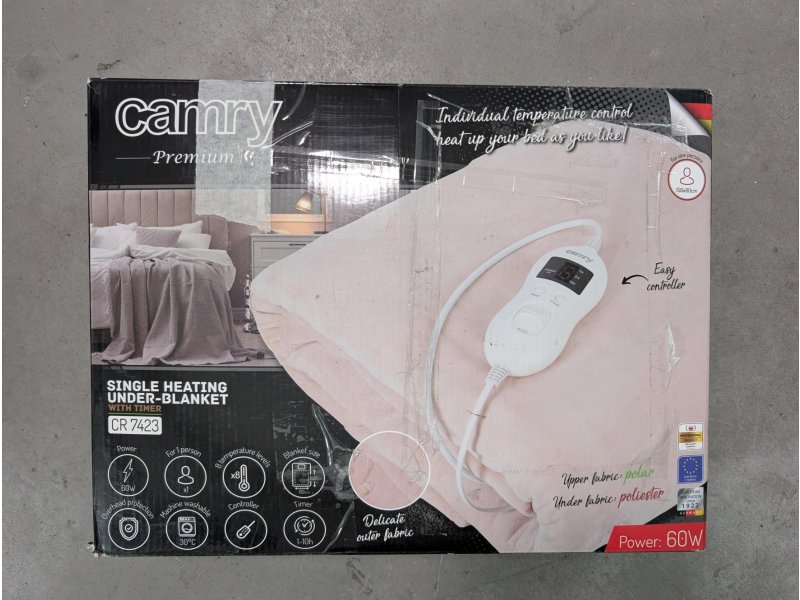 | Karakteristike | Odvojivi kabal za napajanje sa LCD kontrolom Može se prati u mašini na temperaturi od 30°C Tajmer 1/2/10 sati ili režim uvek uključen Tajmer automatski iskljčuje grejanje nakon isteka određenog vremena Zaštita od pregrevanja Unutrašnji materijal: Poliester Dimenzije: 150 x 80 cm Napajanje: 230 V 50/60Hz |