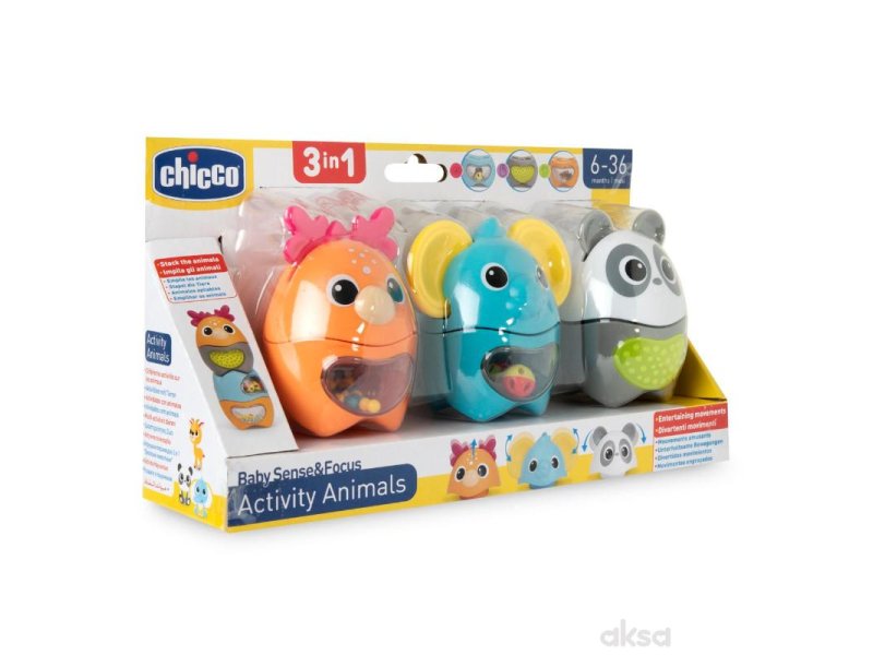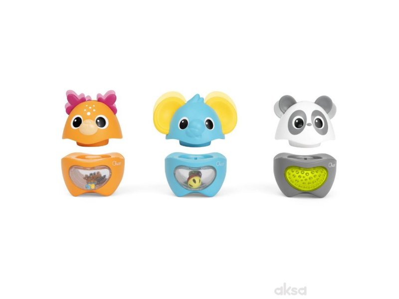 Karakteristike | Tri šarene životinjice sa kojima dete može da se zabavlja na tri različita načina: slažući ih jednu na drugu, gradeći kule u obliku totema i podstičući čula. Iznenađenje: kada dete postavi glave na tela, uši životinjica se pomeraju na zabavan način! Igračka sadrži šest zamenjivih delova za beskrajne kombinacije – svi delovi mogu da se slažu, mešaju i kombinuju, tako da dete može da stvori nove životinje i toteme prema svojoj mašti. Mnoge aktivnosti za stimulaciju čula: slon ima kuglice koje se okreću i mogu da se protresu, lane sadrži šarene perlice koje zveckaju i stimulišu vid i sluh, dok panda ima teksturirani stomak koji podstiče čulo dodira. Tri simpatične životinjice su lagane i lake za držanje! |