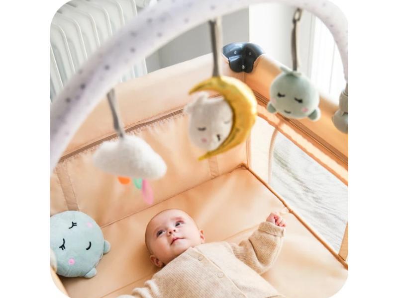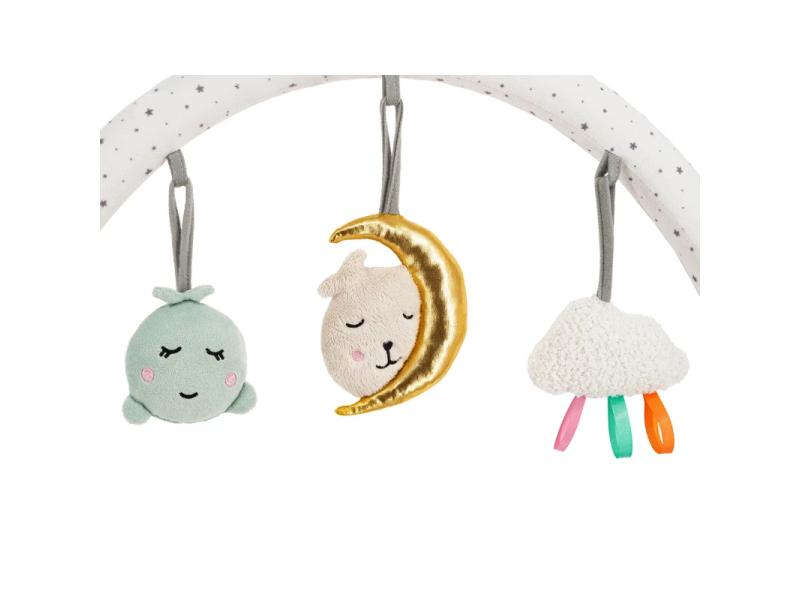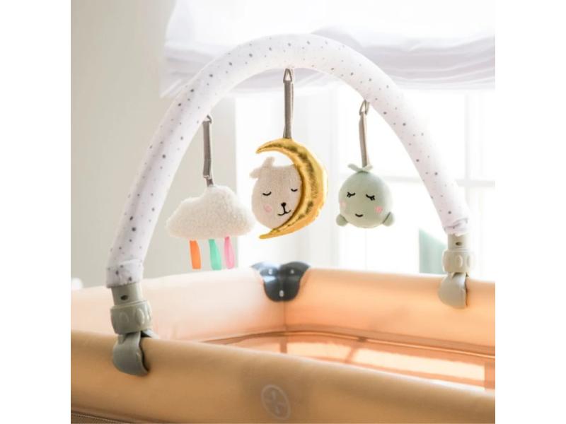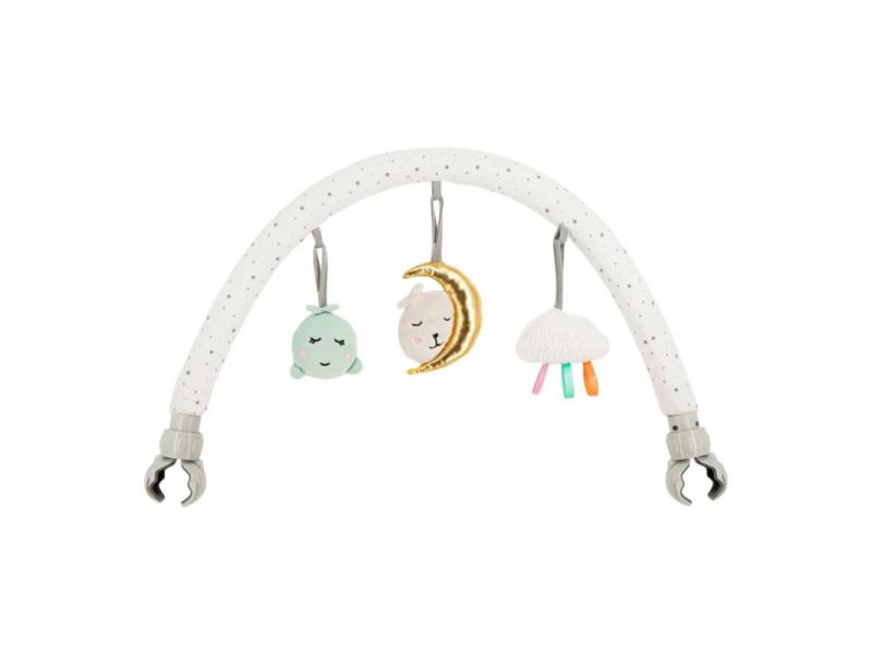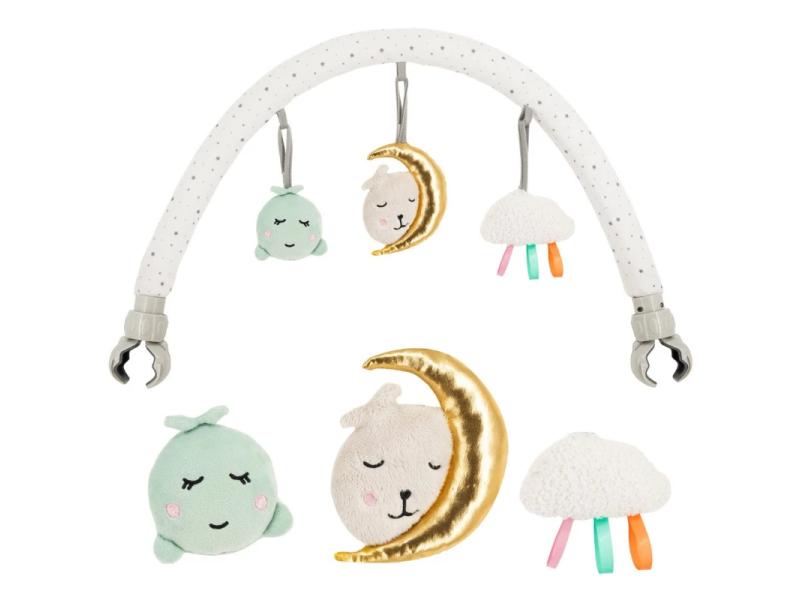 | Karakteristike | Jednostavna instalacija bez potrebe za alatom Univerzalni držač koji odgovara većini modela kreveta, kolica i ljuljaški Nežne i mekane na dodir igračke napravljene od visokokvalitetnih tkanina 3 senzorne igračke – pištaljka, zvečka i ogledalce, sa mogućnošću odvajanja i samostalnog korišćenja, bez šipke za igračke Mogućnost podešavanja ugla nagiba prema potrebama deteta Prigušene boje koje ne odvlače pažnju deteta Mogućnost pranja igračaka u mašini za veš. |