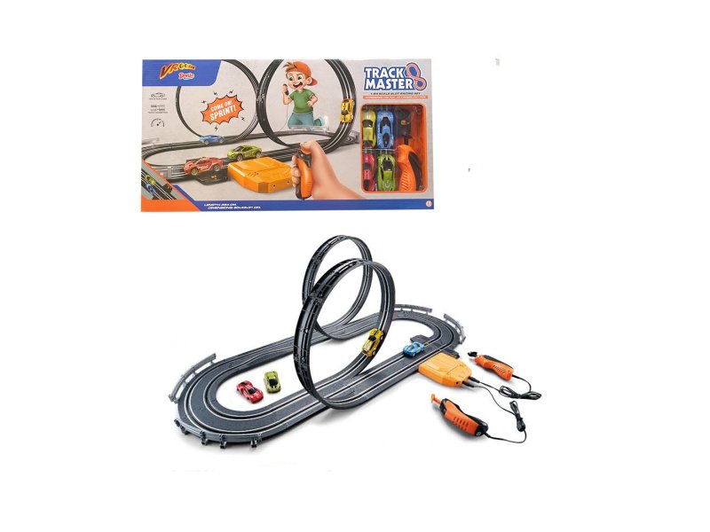U setu: trkačka staza, 2 baze za vozila + 4 maske, daljinski upravljač, 2 džojstika, adapter. Razmera: 1:64.