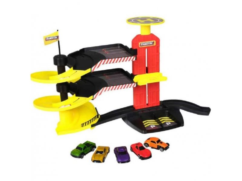Fenomenalna garaža na 3 nivoa stiže ti u setu sa 5 automobila - Sadrži heliodrom, radni lift za automobile, spojne rampe između nivoa i 2 parking mesta na svakom nivou!