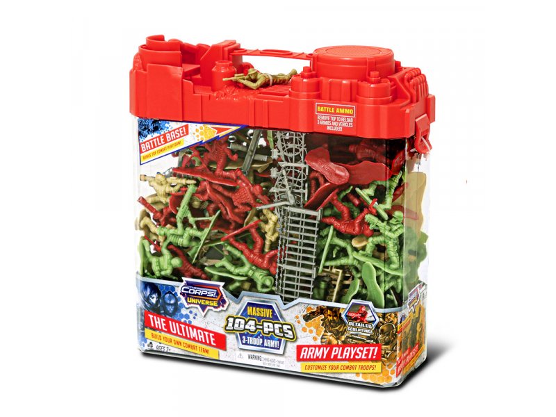 Karakteristike Lanard The Corps Set sadrži 104 elemenata: figurice vojnika, aviona, helikoptera, tenkova.